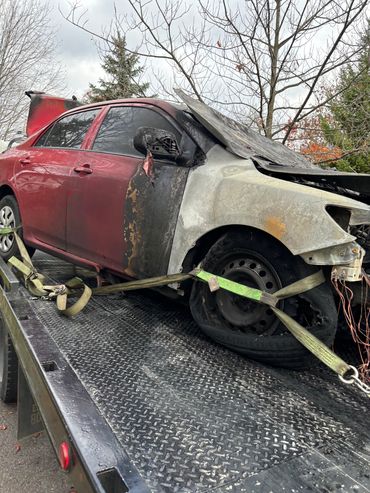 Vehicle ended up in the ditch over the winter season! Our Flatbed had no issues winching it out and the customer was safe and sound.